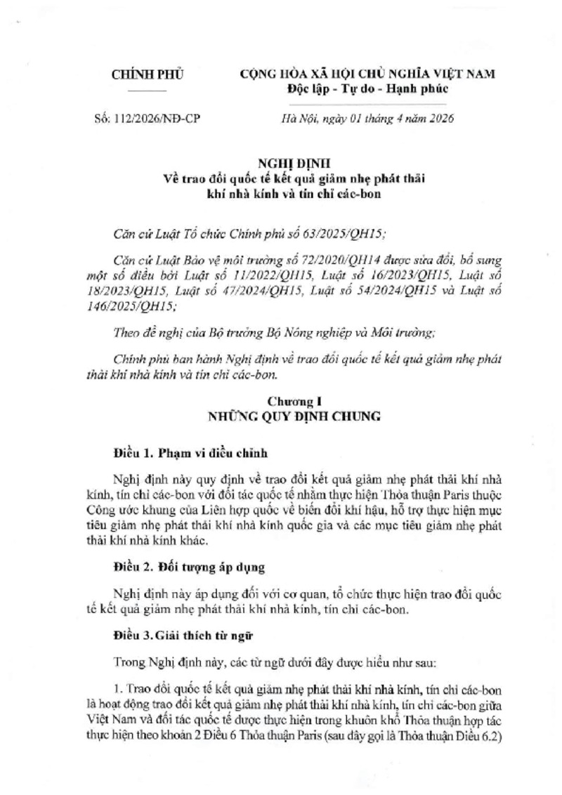 | Tiêu đề văn bản | NGHỊ ĐỊNH về trao đổi quốc tế kết quả giảm nhẹ phát thải khí nhà kính và tín chỉ các-bon | ||